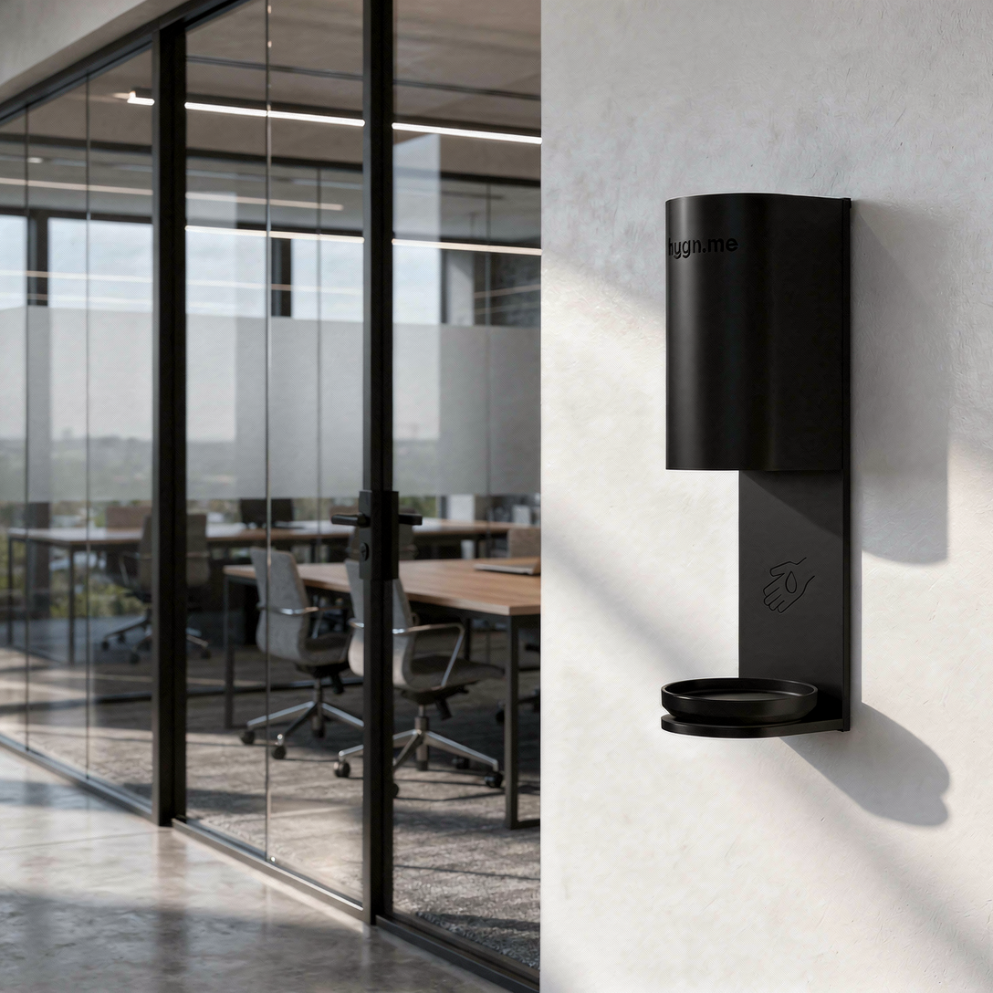 - Station 3 wall black with device for disinfectant dispenser