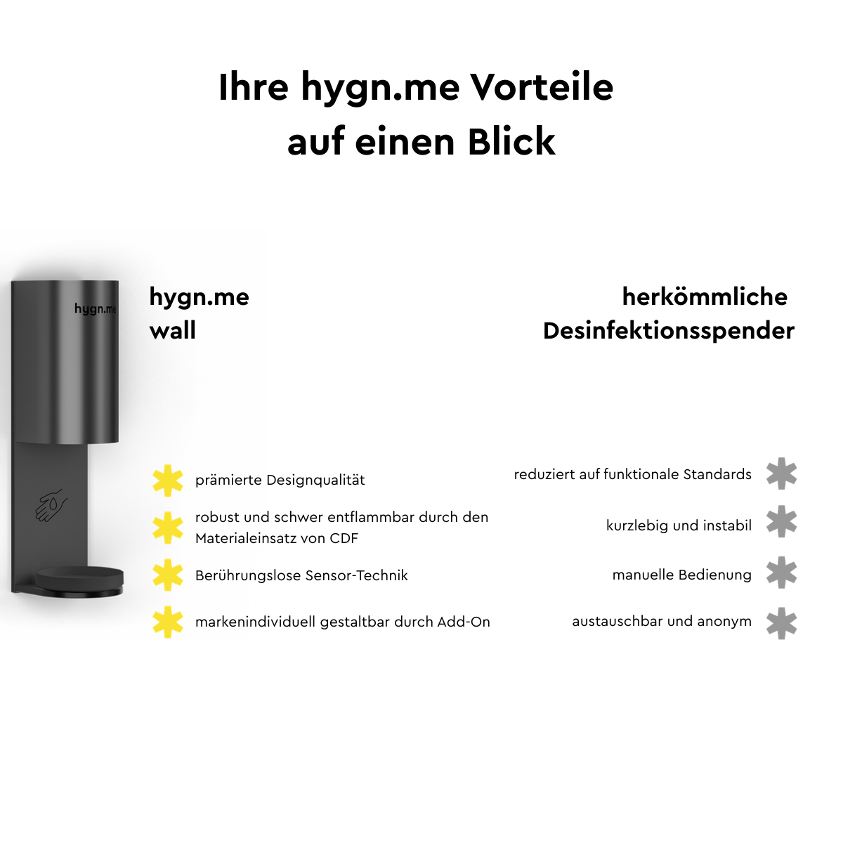 "Es ist wichtig, dass wir Rücksicht aufeinander nehmen und füreinander sorgen, um uns gegenseitig zu schützen und das Miteinander entspannt genießen zu können. hygn.me bietet für mich die ideale Kombination aus Schutz und Komfort für ein hygienisches Miteinander. I care."
