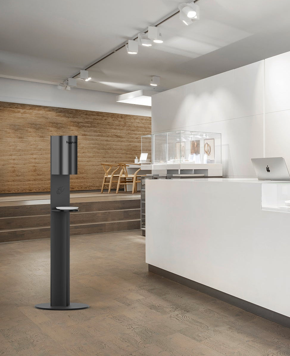 - Station 3 column schwarz mit Vorrichtung für Desinfektionsspender