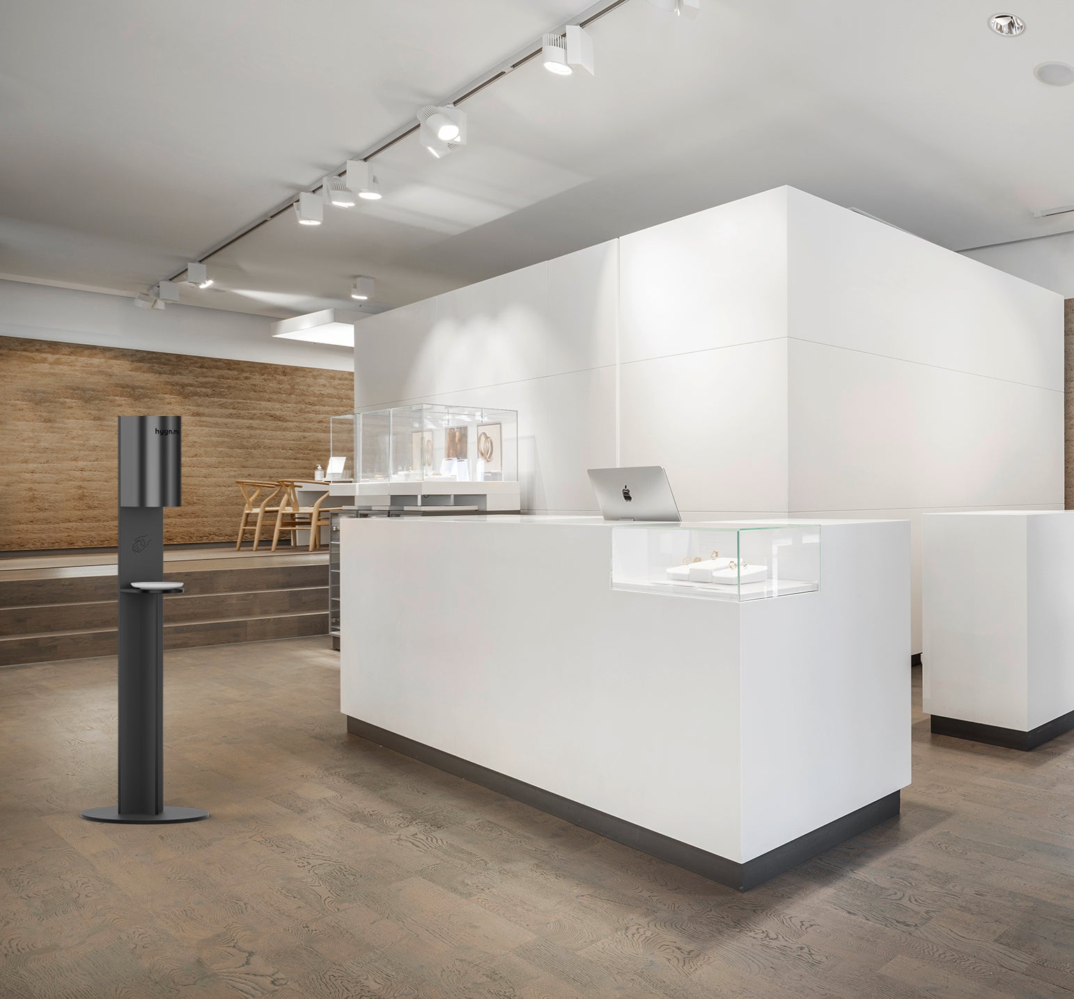 Sie sorgt für maximale Sicherheit bei minimalem Aufwand: Sofort einsatzbereit und ideal für professionelle Handdesinfektion. Erhältlich als freistehende Säule, für den Einsatz auf dem Tisch oder zur Wandmontage.